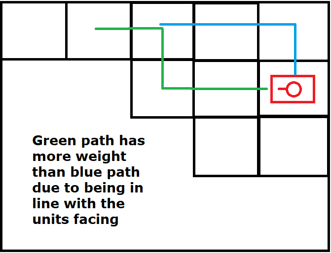 Solution: Addition of a weight for A* paths in front of the vehicle, this meant that the vehicle more often than not would go with the front armor to the target location.