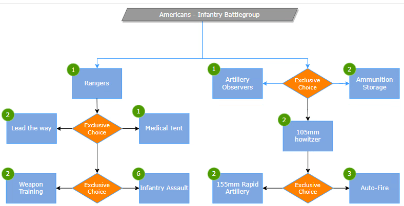 I wanted to enforce an infantry backed army with artillery support, the infantry contained in this battlegroup should be elite to seperate themselves from the core infantry of the American faction. The Rangers regiment should feel elite and unique from other infantry units, this was the core foundation for the battlegroup.